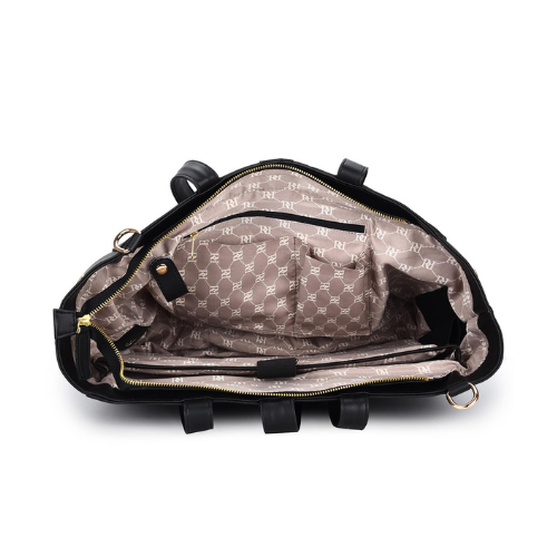 2 sew-in pockets, 2 pen holders, 1 key holder, 1 zipper pocket and bottle holder. Designed for easy access and convenient storage of your belongings.